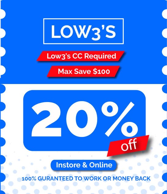 One-time 20% off your Lowes Advantage Card purchase. Excludes Lowes Business Credit accounts, Lowes Visa accounts and all Lowes Canada Credit accounts. Up to $100 discount. If the 5% Off Every Day discount offer is greater than $100, the greater discount will automatically be applied. Limit 1 card per household. Cannot be used in conjunction with: any other coupon/bar code; Military Discount; employee discount; low price guarantee; volume or special discount programs; manager discretion price adjustments; Contractor Packs; extended protection/replacement plans; shipping, delivery, assembly or installation charges; purchase or order with installation service not made at a Lowes store; fees or taxes; gift cards; previous sales; THOR, NXR, AGA, MARVEL, Bosch Benchmark, Heartland, Fisher & Paykel, Monogram, SMEG or Liebherr appliances (some brands not available in all markets/stores); or Weber or Kichler products.